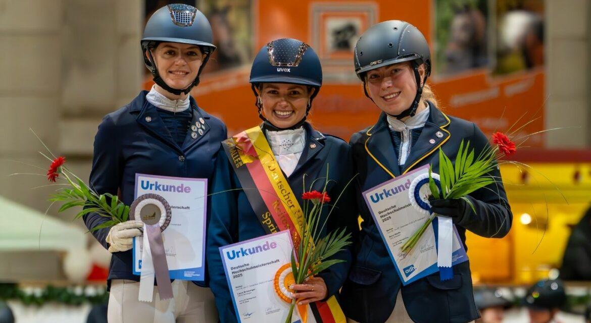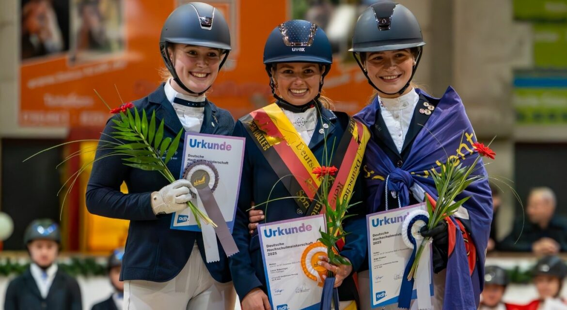 Vom 04. bis zum 07. Dezember 2025 fanden die Deutschen Hochschulmeisterschaften im Reiten ausgerichtet von der Reitgruppe aus Halle an der Saale in Prussendorf auf der Anlage des Gestüt Radegast statt. Den Meistertitel in der Dressur erritt Kim Stadler von der Uni Tübingen, gefolgt...